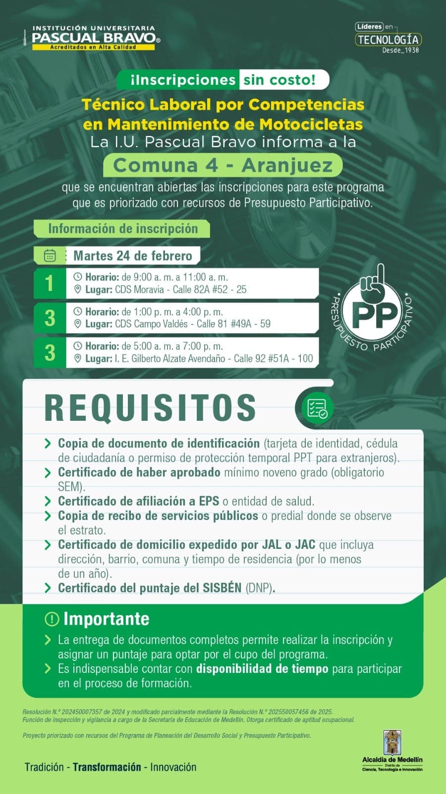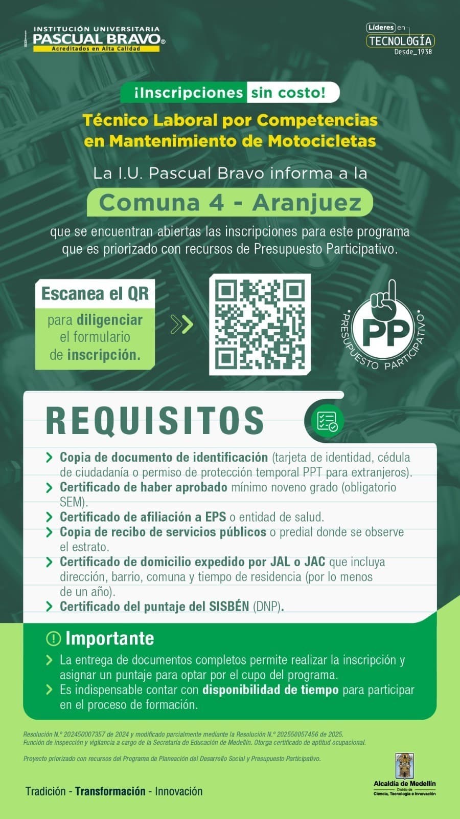 Convocatoria Abierta de Beneficiarios para la Comuna 4 – Aranjuez.