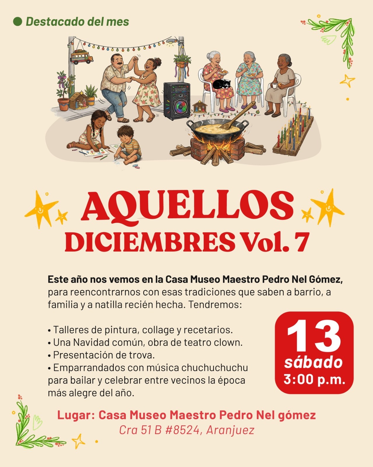✨Este diciembre, el Centro de Desarrollo Cultural de Moravia, se muda a la Casa Museo Pedro Nel Gómez para celebrar esas tradiciones que evocan barrio, familia y alegría compartida. Será un espacio para que la comunidad se reencuentre con los sabores, las risas y las costumbres que han acompañado las navidades de generación en generación.