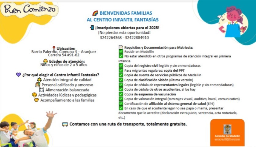 👩👦👦 El Centro Infantil Fantasías, ubicado en el barrio Palermo, invita a las familias a inscribir a sus niños y niñas entre los 2 y 5 años para el año 2025.