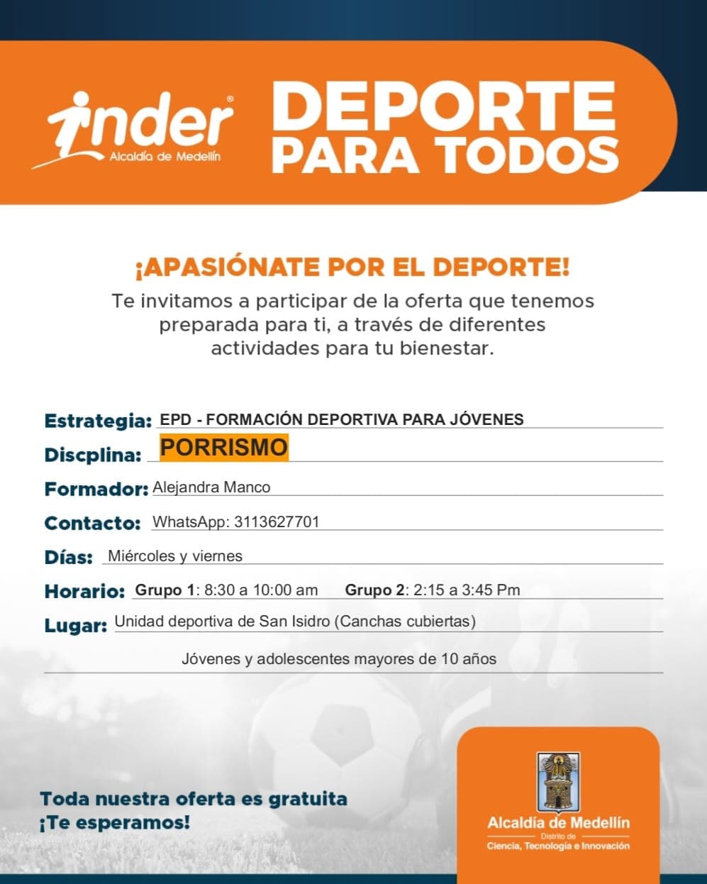☺️ La comunidad de San Isidro recibe esta estrategia del INDER Medellín, pensada para que jóvenes y adolescentes se acerquen al deporte, fortalezcan su cuerpo, disciplina y trabajo en equipo a través del porrismo.