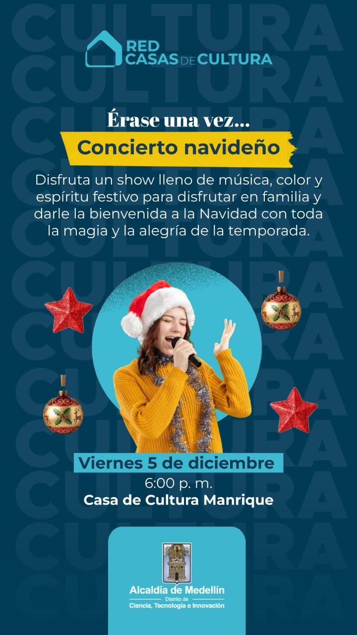 🎶 La Red Casas de Cultura invita a disfrutar de un show lleno de música, color y espíritu festivo, pensado para que las familias se reúnan y le den la bienvenida a la Navidad con toda la alegría y el encanto de la temporada.