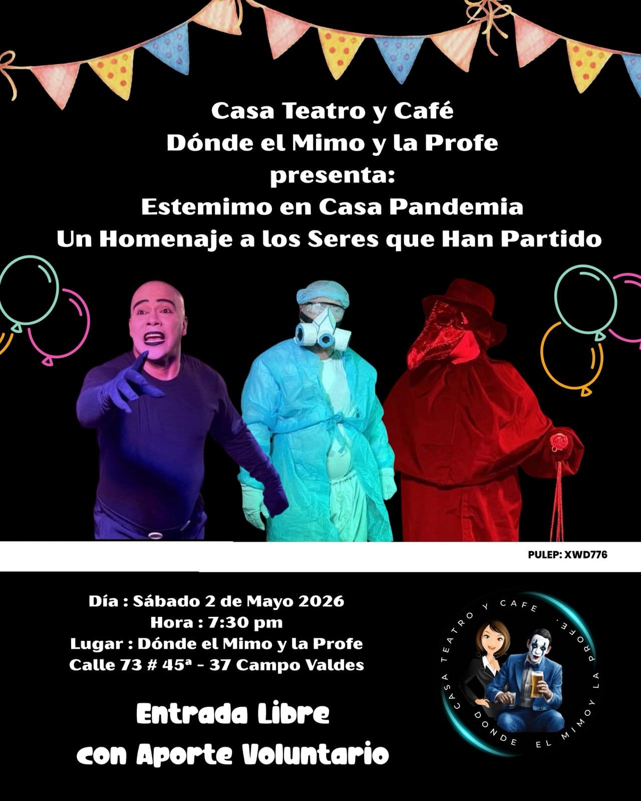 📍 Lugar: Casa Teatro y Café Dónde el Mimo y la Profe, Calle 73 # 45A – 37, Barrio Campo Valdés.