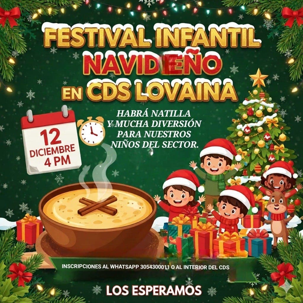 🌟El Centro de Desarrollo Social San Pedro Lovaina invita a todas las familias del sector a participar en su Festival Infantil Navideño, una tarde pensada especialmente para que los niños y niñas disfruten de la magia de diciembre en comunidad. Este encuentro navideño ofrecerá natilla, diversión, juegos, música y actividades recreativas, creando un espacio lleno de alegría y unión familiar en esta época tan especial.
