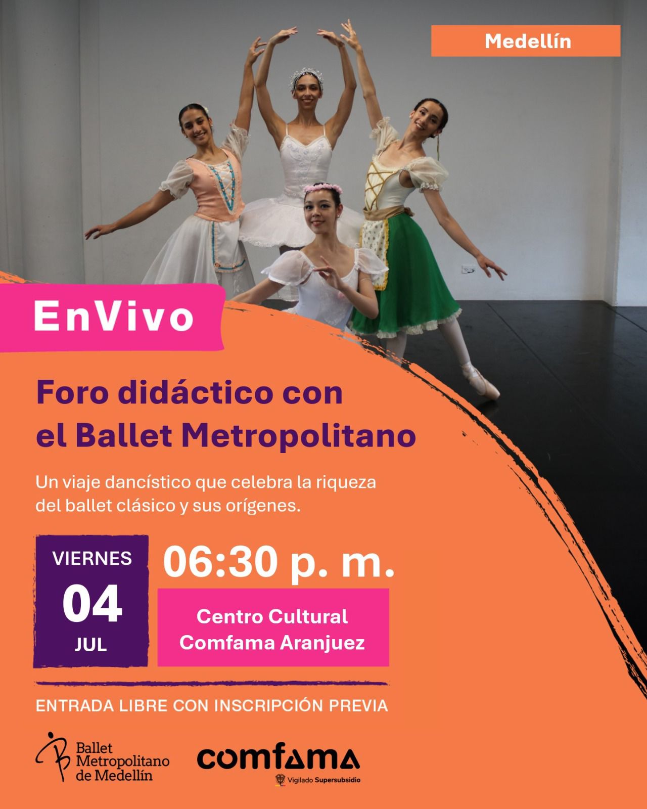 🏪El Centro Cultural Comfama Aranjuez invita a toda la comunidad a vivir una experiencia inolvidable con la presentación del Ballet Metropolitano, una puesta en escena que revive la elegancia del ballet nacido en las cortes europeas.