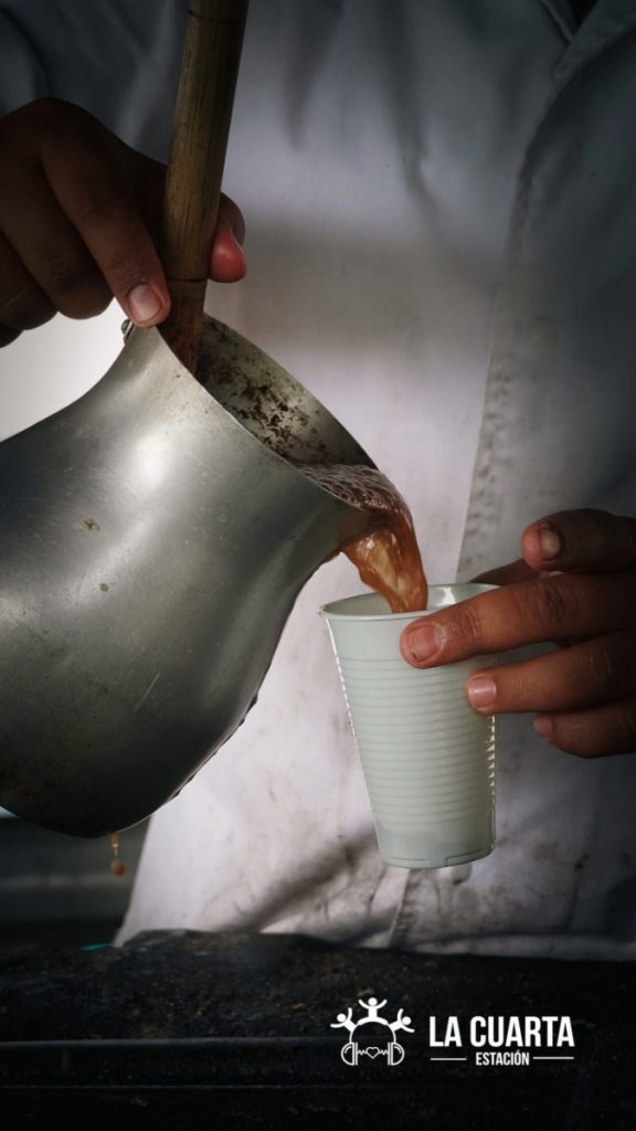 En la mañana, el fuego comienza a gestarse entre los trozos de una pirámide de carbón, que luego se extienden para convertirse en un vistoso tendido de color rojo incandescente. El momento es propicio para “montar las arepas”, entonces, comienzan a asarlas.