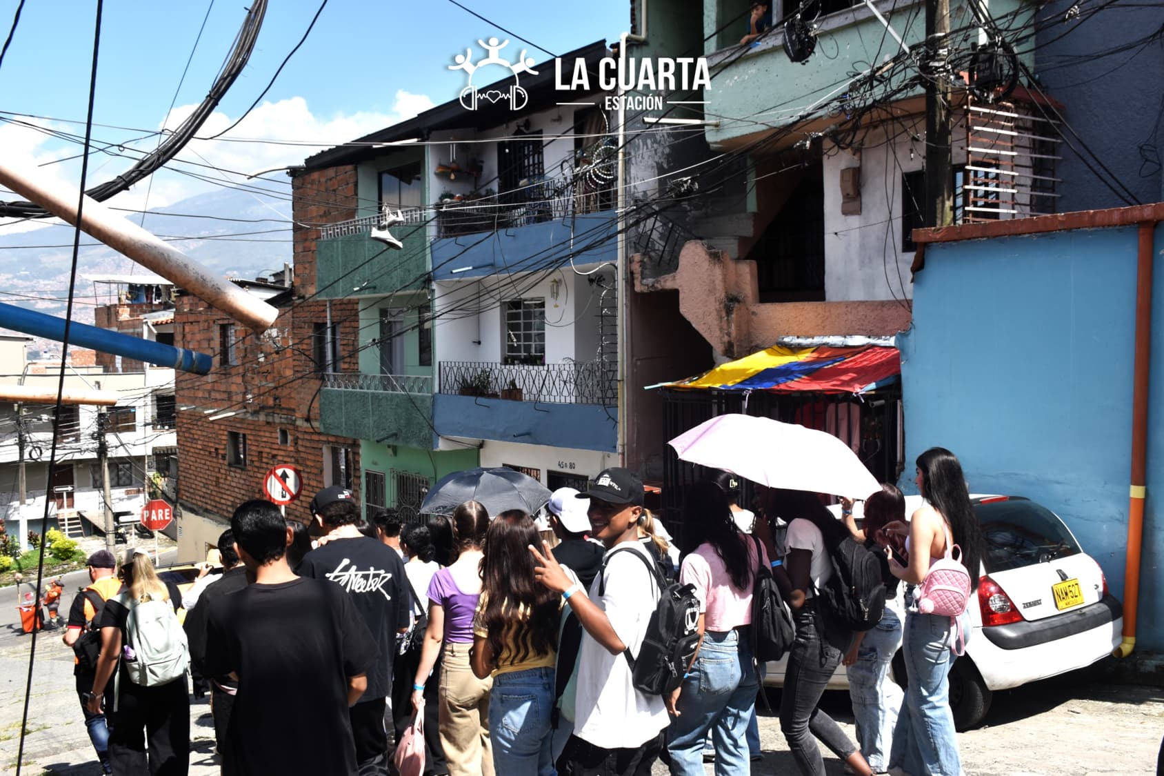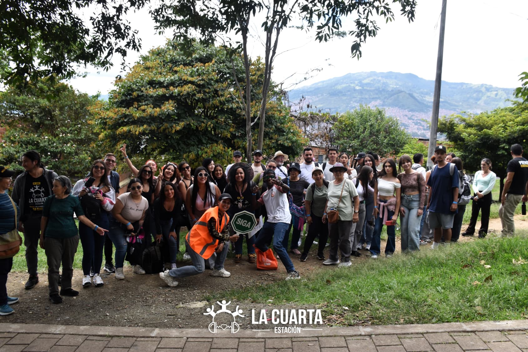 A pasos lentos subo la loma que en su filo se corona con el glorioso letrero de “Estación Berlín”. Al llegar, comienzo a preparar mi cámara para la jornada, una Nikon D5600, con una lente que atrapa mucho más que recuerdos. La mañana es joven y veo cómo la luz se dispersa entre los árboles del barrio Las Esmeraldas de la Comuna 4 – Aranjuez. Un grupo creciente de jóvenes sonrientes y adultos curiosos va reuniéndose alrededor de nuestra guía.