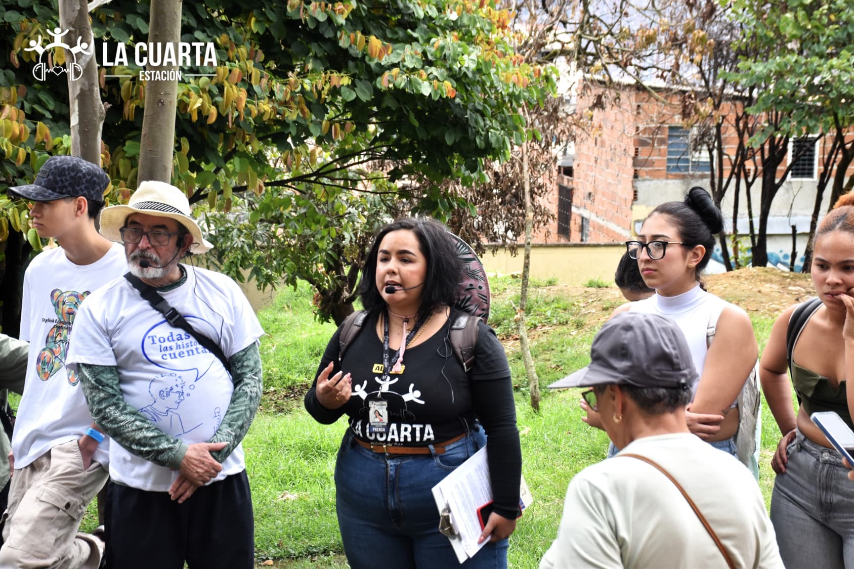 “Bienvenidos a Andareguiando Aranjuez, el día de hoy vamos a tener una experiencia que tiene como propósito recorrer y sentir este territorio a través de las historias y memorias de las organizaciones sociales, culturales, ambientales y los emprendimientos que conoceremos”, dice Jennifer Cortés, guía del recorrido que está por iniciar.